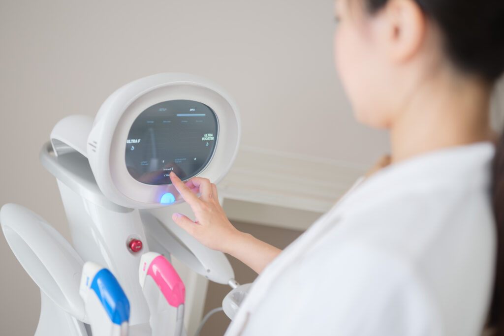 当院で使用しているHIFUの機器は医療用ハイフのウルトラフォーマーMPTです。複数(表面から2.0mm、3.0mm、4.5mm、6.0mm)の層にわたる皮下組織に皮膚表面や他の組織を傷つけず、高エネルギーの超音波による熱エネルギーを集中させ、タンパク変性による収縮で引き締め、小顔効果をもたらします。